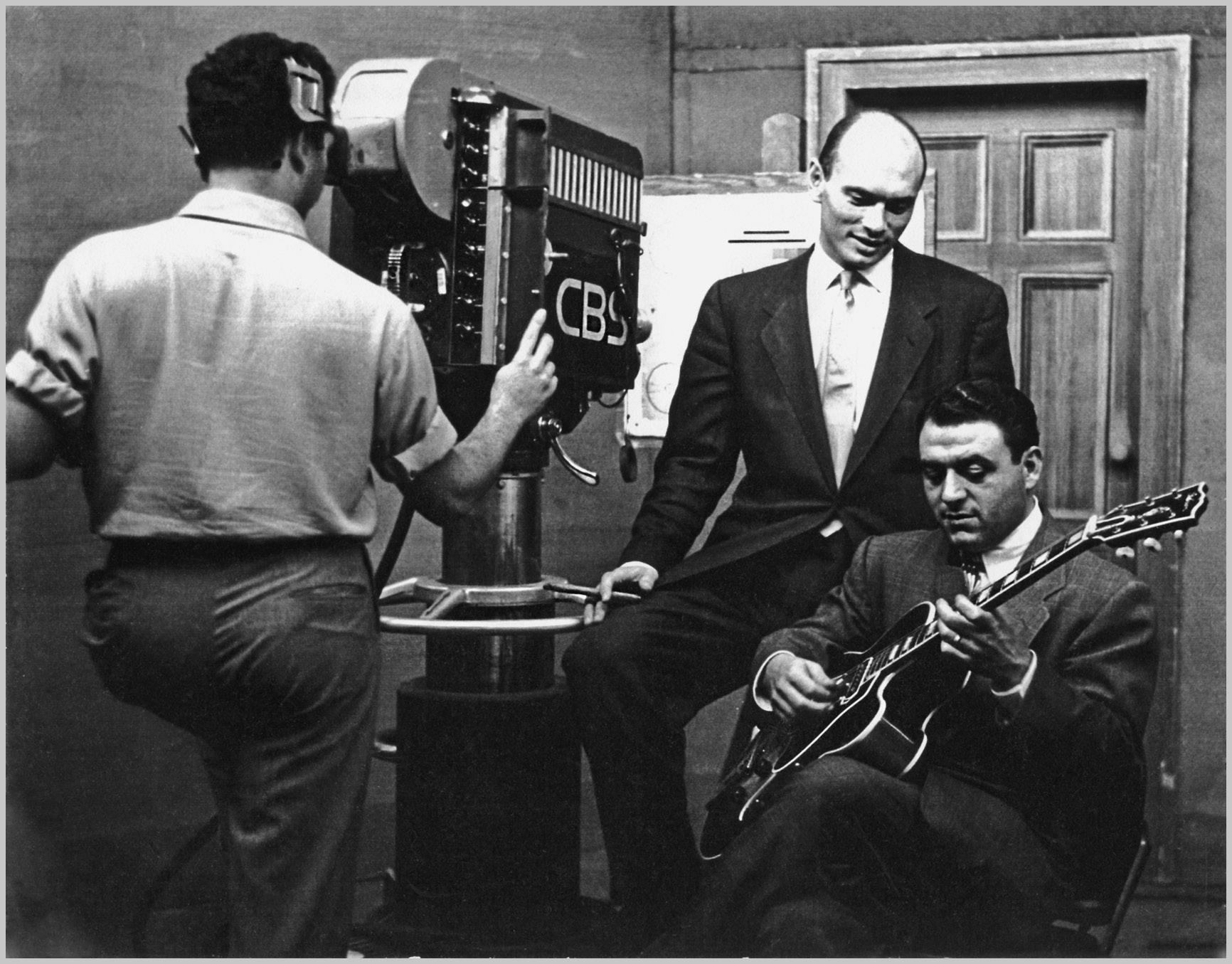 Tony Mottola (with guitar, seated) with director Yul Brynner, rehearsing for an episode of Danger