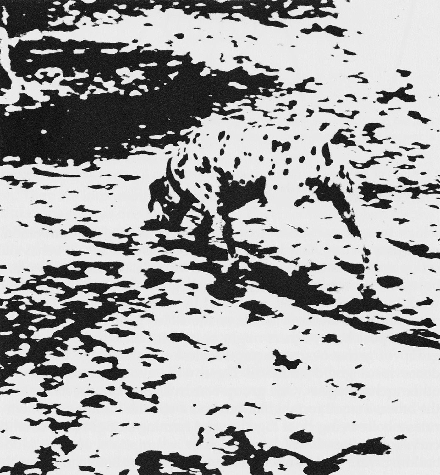 This example illustrates that whether or not you are able to grasp a piece of music may depend heavily on the knowledge and expectations that you bring to your listening experience. There are many examples of this in vision. Fragmented figures, in which only some of the information is present, furnish particularly good illustrations. Look at the picture shown in Figure 0.1. At first it appears as a meaningless jumble of blobs. But as you go on looking (and this might take a few minutes) the picture gradually assumes a meaning, so that ultimately you wonder why you had a problem recognizing the image in the first place. And when you view the same picture again—even weeks or months later— the chances are that it will make sense to you immediately, since your visual system is organizing its various components in light of the knowledge that you had acquired.
