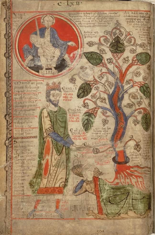 Fig. 3. Two dreams of Nebuchadnezzar, combined, from the Liber floridus. Ghent, Universiteitsbibliotheek, MS 92, fol. 232v.