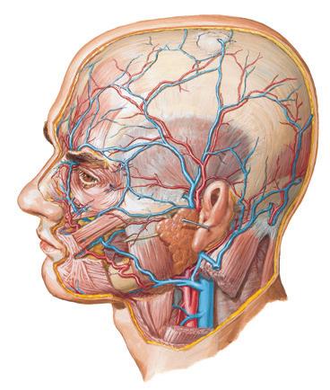 • Facial: face richly perfused, with anastomoses across midline, anterior to posterior, and between intra- and extracranial branches