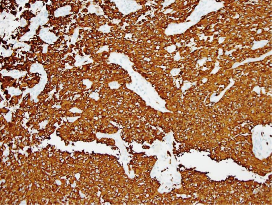 In practice, H&E analysis is paired with immunohistochemistry (IHC) to support tumor classification particularly for lineage assignment and, more recently, to identify specific mutations that can be detected at the protein level. IHC is a method of applying antibodies against specific protein antigens that are evaluated using light microscopy. Common markers that are assessed by IHC include GFAP (glial fibrillary acidic protein), a cytoplasmic marker of