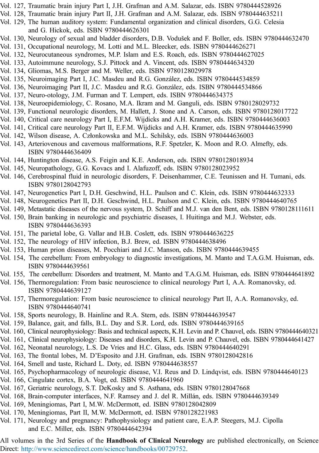As always, it is a pleasure to thank Elsevier, our publisher, and in particular Michael Parkinson in Scotland, Nikki Levy and Kristi Anderson in San Diego, and Punithavathy Govindaradjane at Elsevier Global Book Production in Chennai, for their assistance in the development and production of the Handbook of Clinical Neurology.