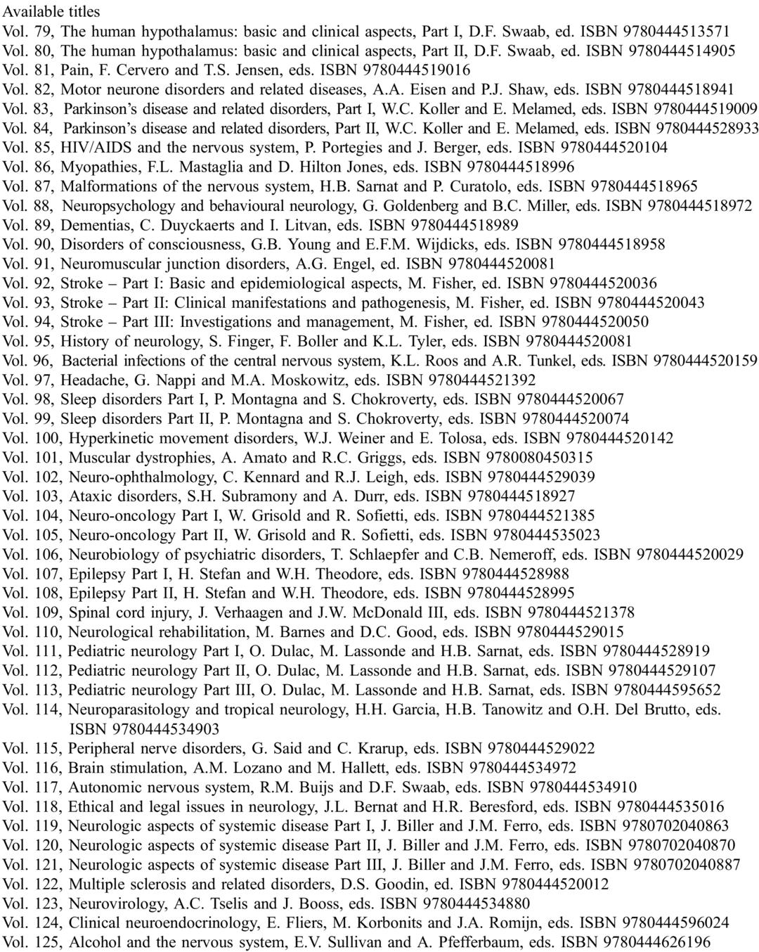 Michael J. Aminoff; François Boller; Dick F. Swaab