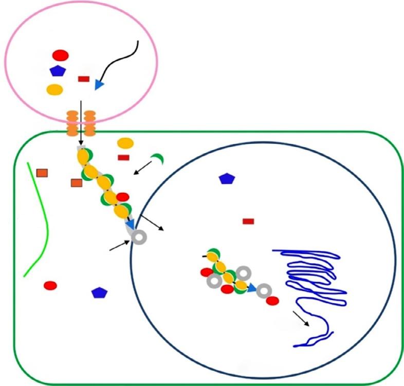 This is the general mechanism for siRNA degradation process. Although all main steps are similar with siRNA degradation process, there are some details for VIGS method in plants for silencing of GOI. After the modification of viral genome that is joined with target gene portion, this construct is transformed into plants using A. tumefaciens. In the plant cell, foreign RNA molecule is transcribed and replicated by an endogenous RNA-dependent RNA polymerase (RDRP) enzyme. As a result, long dsRNA molecule is produced and then recognized by DICER. After the cleave of dsRNA into siRNAs, they are noted by RISC complex and converted them to single-stranded siRNAs. The RISC complex utilizes these single-stranded siRNAs to find out their complementary sequences in RNA pool of the cell. After finding right sequences, they are degraded (Ding and Voinnet, 2007; Waterhouse and Fusaro, 2006). Finally, target siRNAs are propagated and transported to other parts of plants for systematic gene silencing.