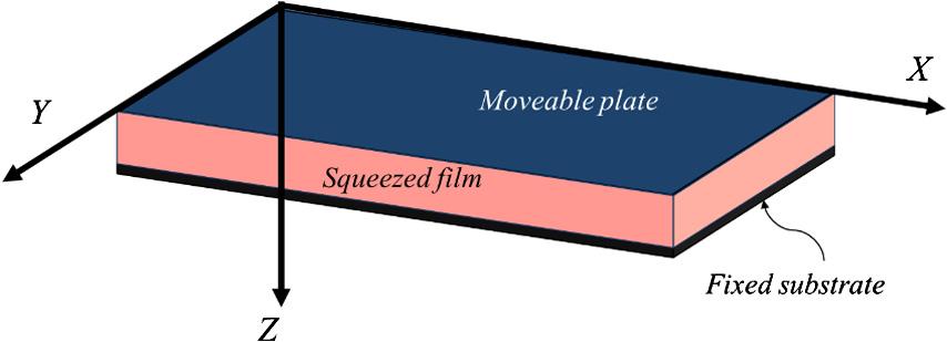 Thedynamicofsmallpartsinanultrasmallsystemcanbeaffectedbythemovement ofthefluidtrappedunderneaththeplate,whichisknownassqueezedfilmdamping (seeFig. 1.14).ForNEMS/MEMSwithamoveableplate,squeezefilmdampingcan affectthesystemfrequencyresponse.Squeezefilmdampingisthemostcommonand dominantenergylossmechanisminNEMS/MEMS.Ingeneral,thedynamicofthe squeezefilmisgovernedbybothviscousandinertialeffectsonfluid.However,for ultrasmallstructures,theinertialeffectcanbenegligible.Insuchacase,assumingideal gaslawandisothermalconditions,thebehaviorofaNewtonianfluidcanbeexpressed bytheReynoldsequationas