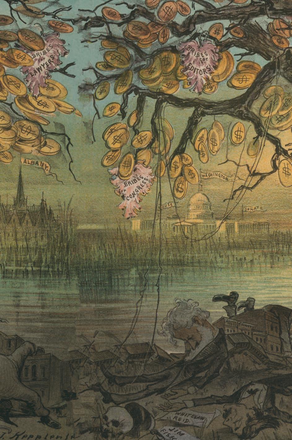 Hoping to correct this oversight, this book aims to develop a conceptual framework for analyzing the affective-political work of the occasionally well known but consistently understudied Gilded Age political novel. “The Gilded Age”—roughly the period from the election of President Ulysses S. Grant in 1869 through the end of that century—is ripe for such an analysis, given that it is defined both by a phenomenon, political corruption, and a set of feelings about it. Mark Summers has argued persuasively that rapid government expansion after the Civil War did indeed produce prime conditions for political venality, but bribery, vote buying, lobbying, and profiteering were not new. Indeed, the increased intensity of the public’s focus on corruption was in many ways more consequential than the misdeeds themselves.6 Reformers zeroed in on the failings of politicians and the political process while also worrying about the widespread disgust with politics and its potential impact on civic participation. Along with other popular nicknames, such as “The Era of Good Stealings” and “The Great Barbecue,” “The Gilded Age” denotes a period of rampant greed and appetitive excess while also capturing the cynicism, bitterness, and exhaustion that attended the period’s major scandals.