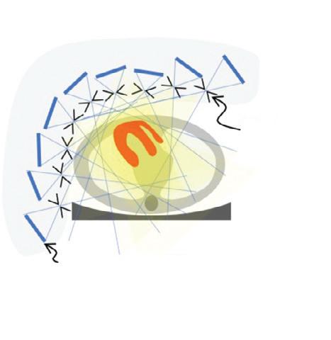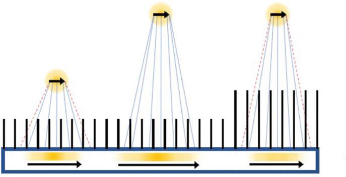 The scintillation light from the detector crystal spreads from the point where the gamma ray interacts with the crystal. The spreading light shower illuminates more than one light sensor and the amount of light seen by a light sensor depends on its distance from the point of interaction. Using the known positions of the light sensors and a weighted combination of the signals measured by each, the location of the point of interaction of the gamma ray with the scintillation crystal can be calculated.5 The energy and location of the detected gamma ray are recorded and used to build up a 2D picture, also known as a “projection,” of the distribution of the radioisotope in the patient.