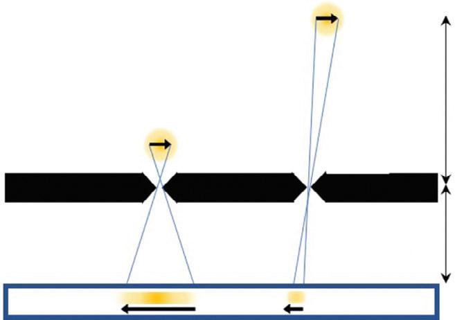 The sensitivity for detecting gamma rays is approximately uniform for varying distances of sources from a parallel collimator. The spatial resolution degrades linearly with distance of the source from the plane of the detector so that an object close to the detector-collimator will be resolved more clearly than an object farther away8 (see Fig. 1.2A).