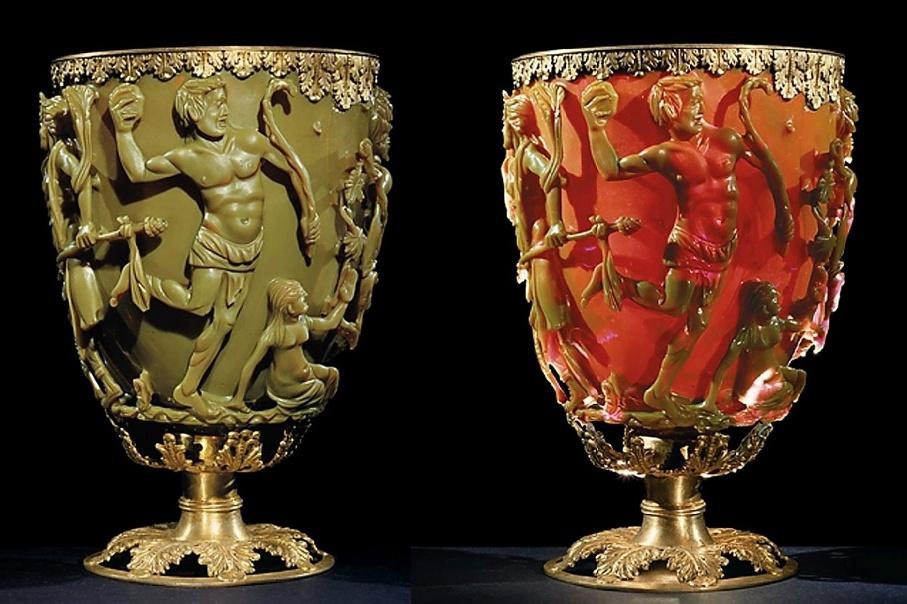 Nano-objectspossesspropertiesbetweenthebulkmaterialandthe molecule.Forinstance,metallicNPsofferopticalpropertiesthatcannotbe obtainedfrombulkmetals.Thesepropertieshavebeenusedsinceantiquity, likeforinstanceinthefamousLycurguscupwhosecolorchangesfromgreen