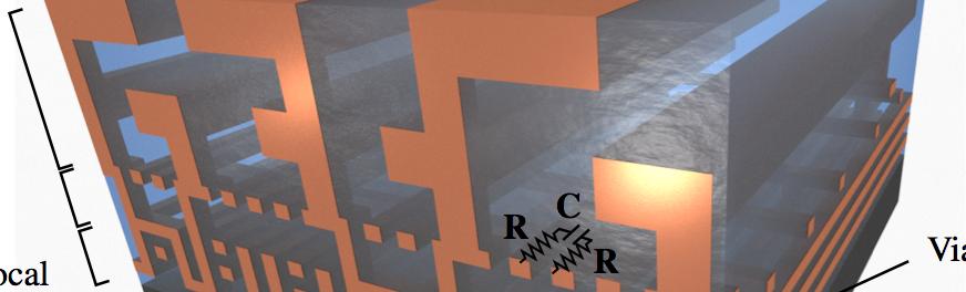 Figure1.3. Typicallocalarrangementofamicrochip,includinglocal, intermediateandglobalinterconnectsarrangedinseveral“metallevels” connectedtoeachotherbyvias