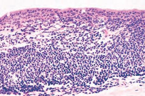 a. Plasmacytoid cell (Fig. 1.16A and B): This has a single eccentric nucleus and slightly eosinophilic granular cytoplasm (instead of the normal basophilic cytoplasm of the plasma cell).