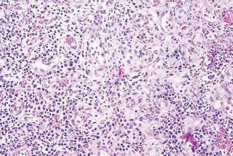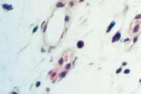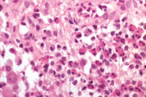 2. Inflammatory giant cells, probably formed by fusion of macrophages rather than by amitotic division, predominate in three forms: