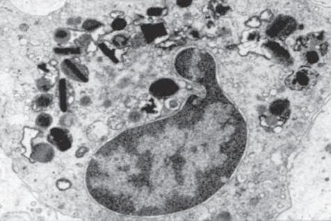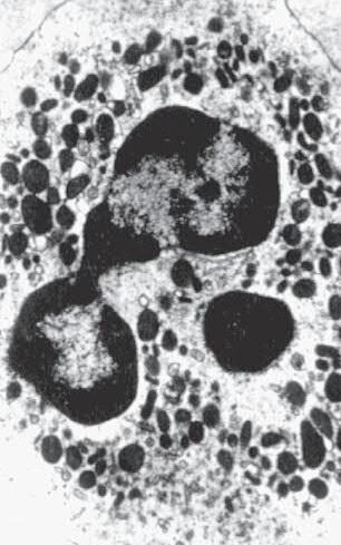 2. Mast cells (basophils; Fig. 1.7) elaborate heparin, serotonin, and histamine, and they are imperative for the initiation of the acute inflammatory reaction.