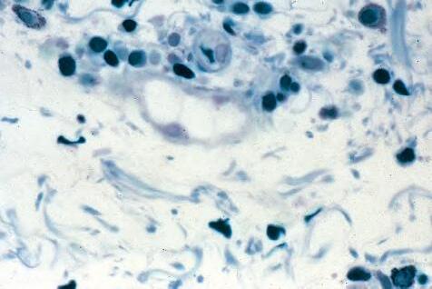 Except for location, mast cells appear identical to basophils; mast cells are fixed-tissue cells, whereas basophils constitute approximately 1% of circulating leukocytes. Basophils are usually recognized by the presence of a segmented nucleus, whereas the nucleus of a mast cells is large and nonsegmented.