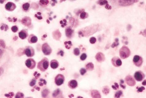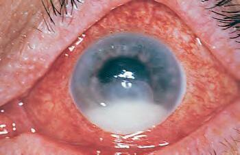 3. Purulent exudate (see Figs. 1.1 and 1.5) is composed primarily of PMNs and necrotic products (e.g., as seen in a hypopyon).