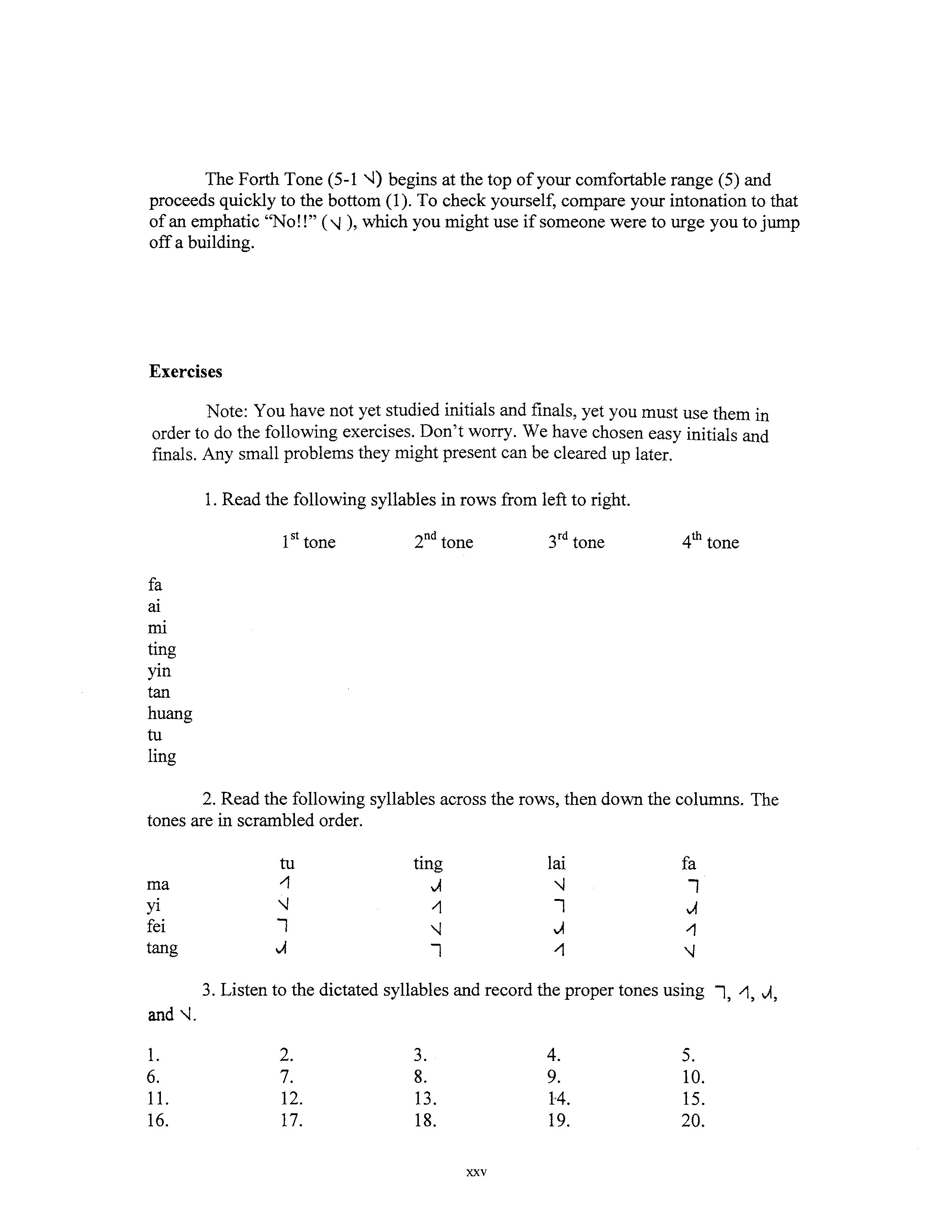3. Listen to the dictated syllables and record the proper tones using l, -1, vi, and '-1.