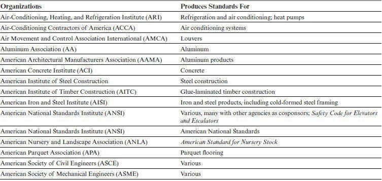 The building construction industry is made up of so many diverse interest groups that it has not been possible to develop a single comprehensive set of criteria or standards acceptable to all concerned In addition, groups that are more intimately involved in a product or construction system are generally best qualified to establish standards for them.Theresultismanyorganizationsthatestablishstandards.