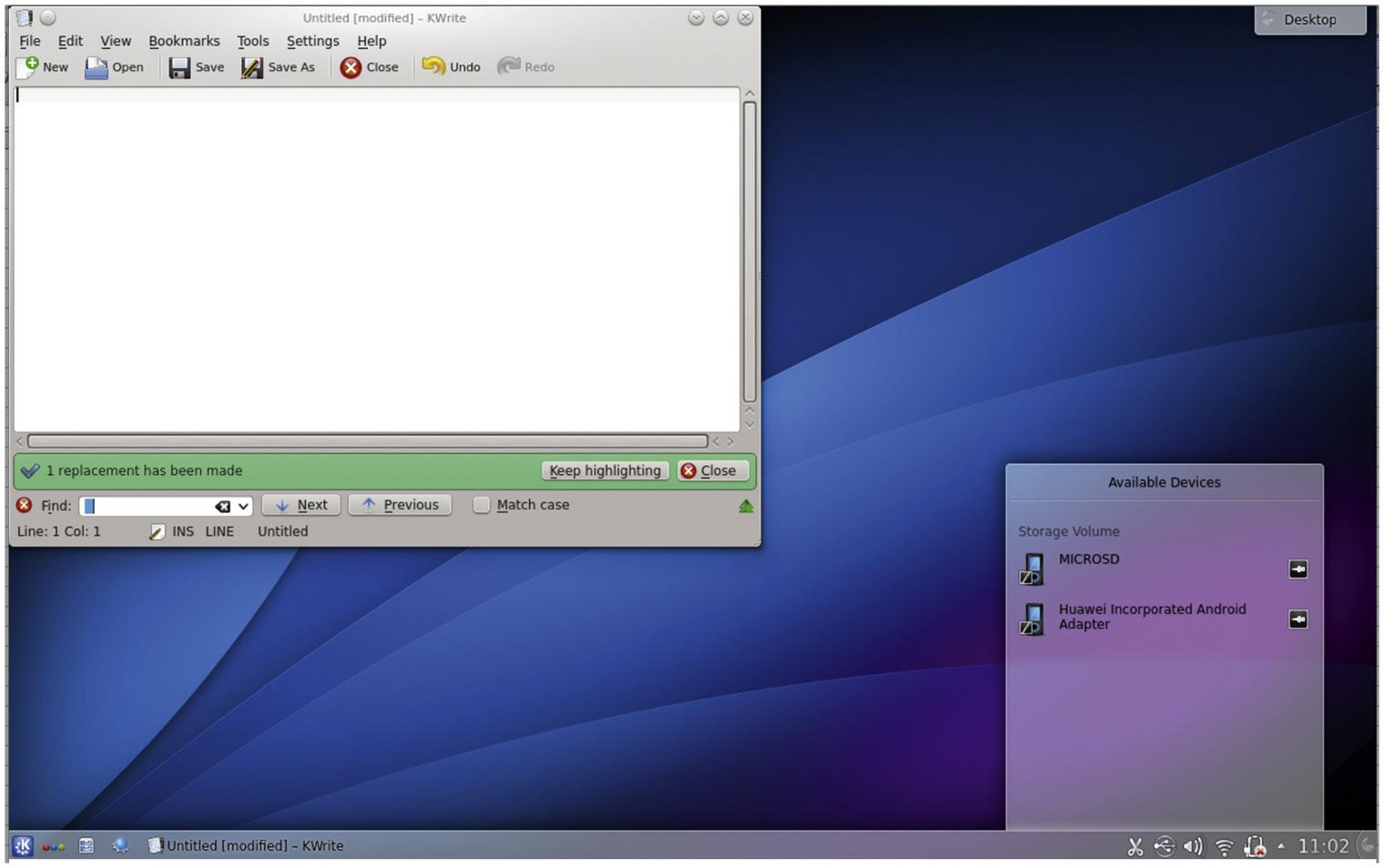X has a fairly lengthy history of not being a very well liked system but perhaps some of that has to do with not completely understanding what X is and what the design goals were. X was designed to be simple and extensible. It was also designed to provide graphics primitives and a set of protocols that could be used to build on top of when creating actual graphical user interfaces. Simplicity was preferred over functionality in some of the early design goals. In the thirty years since X was first conceived, there have been other systems developed but X is the one that continues to be used. You will likely never see X itself, though, which is currently developed by the Xorg Foundation, but instead, you will see one of the interfaces that sits on top of X. Two of the most predominant ones today are Gnome and KDE. You can see the latest release of Gnome, which has undergone several stylistic changes across versions, in Figure 1.3. KDE, which has always more or less modeled its visual design on Windows, can be seen in Figure 1.4