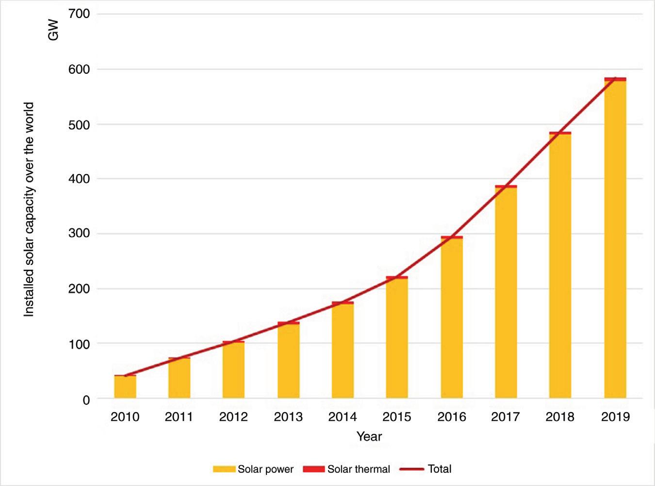 Figure1.4 Installedsolarcapacityovertheworldfrom2010to2019.FromInternational RenewableEnergyAgency [11].
