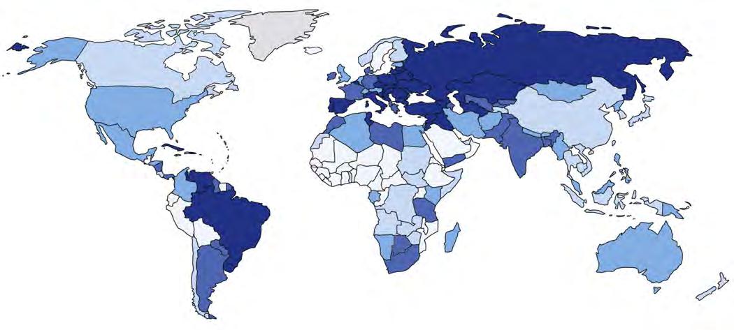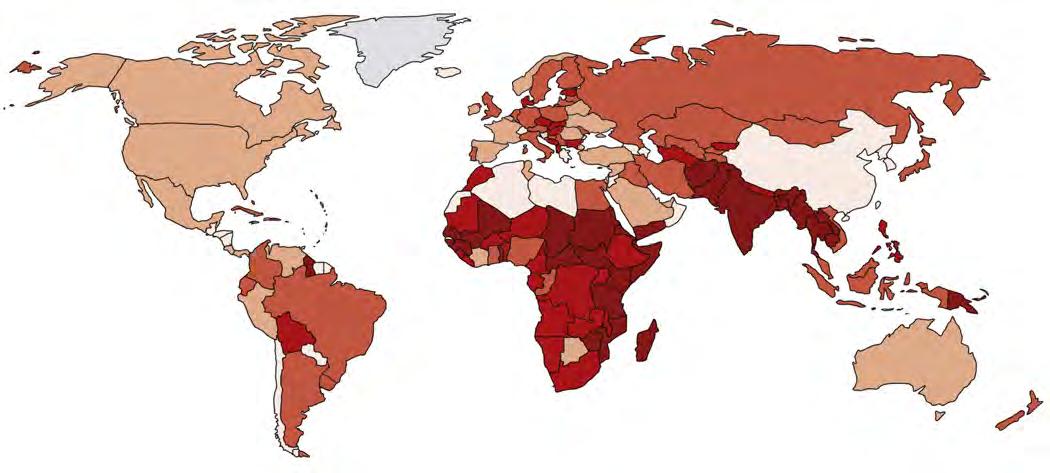 With the data taken as a whole, it is apparent that the public health burden of HNSCC is predominantly a result of smoking and is borne by Eastern Europe, Central and Eastern Asia, and South Asia (Fig. 1.3). China is the major storehouse of tobacco-related morbidity and mortality in the world, a nation where more than half the population continues to smoke. Yemen, Indonesia, Mongolia, Armenia, and Kenya are the five top-ranked countries for smoking prevalence, at 77%, 69%, 69%, 68%, and 67%, respectively.