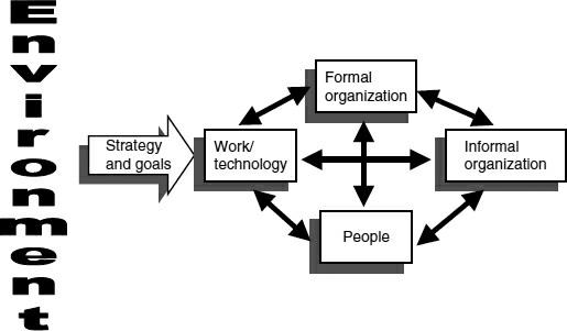 Organization charts are enormously useful but convey only a small part of what we mean by “organizations” There have been many models that render the diversity and complexity of organizations manageable by focusing on a few central dimensions somewhere between an organization chart and an actual organization. For our initial discussion, we use Figure 1-3 adapted from Nadler and Tushman’s “congruenceframework”(1997) Letusbrieflyconsidereachelement