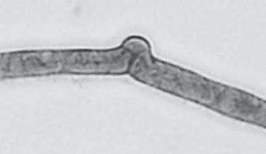 fungi classified in the phylum Zygomycota produce single, thickwalled, sexual zygospores which are often highly ornamented. However, with a few notable exceptions, most fungi are heterothallic and will only undergo sexual reproduction when two independent, compatible isolates are present (Figure 2.2), and often in unique environmental conditions. Thus a fourth form-division, the Deuteromycota (or Fungi Imperfecti), was created to encompass all those fungi for which a sexual form (teleomorph) had not been described or could not be induced (Figure 2.2) (reviewed in Talbot 1971; Kendrick 1981; Seifert 1993). A similar classification into Ascomycota, Zygomycota, and Basidiomycota could be achieved on the basis of examination of the anamorph (asexual) forms of the fungi, including the presence of specific hyphal structures (septa, clamp connections) and the types of asexual spores formed and their method of production (conidiogenesis) in laboratory cultures (Figure 2.1) (Hughes 1953;. The hyphae of Zygomycota species are hyaline (colourless), broad, and ribbon-like and possess few to no septa (pauci-septate), and asexual conidia (termed sporangiospores) are typically produced inside large sac-like structures (sporangia). Conversely, the hyphae of filamentous Ascomycota species (many medically important Ascomycota species are yeasts) are narrow and highly septate, and may be either hyaline or dematiaceous (brown). Ascomycota species typically produce large numbers of conidia in culture on appropriate media, although the precise mechanism of conidiogenesis varies dramatically. Finally, species of the filamentous Basidiomycota, whilst producing hyphae similar to those of the Ascomycota, rarely produce conidia in culture, and most often present as rapidly growing floccose (fluffy) white colonies. However, upon careful examination, the hyphae can be distinguished from those of the Ascomycota by the presence of clamp connections (Alexopoulos et al. 1996; Figure 2.1) and, occasionally, delicate lateral projections termed spicules. It should, however, be noted that most medically important Basidiomycota species have anamorph states that are spherule (yeasts) rather than hyphal in form.
