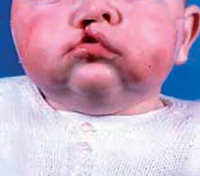 If the shelve fusion fails, this is likely to result in clefts of the palate. The extent of these clefts varies clinically from submucous clefts, affecting the bony structure of the palate and underlying muscular attachment and clefts of the soft palate which may or may not have significant effects on speech, to those including the hard palate producing communication between the nasal and oral cavities (Fig. 1.6).There appear to be distinctive differences between clefts of the palate and those of the lip and palate within different geographical and sexual distributions. This also suggests different disruptive mechanisms and timings, as lip closure occurs earlier in development than palatal fusion. However, as clefts of the palate alone and lip with palate can occur in certain families, it suggests that the distinction may not be complete.
