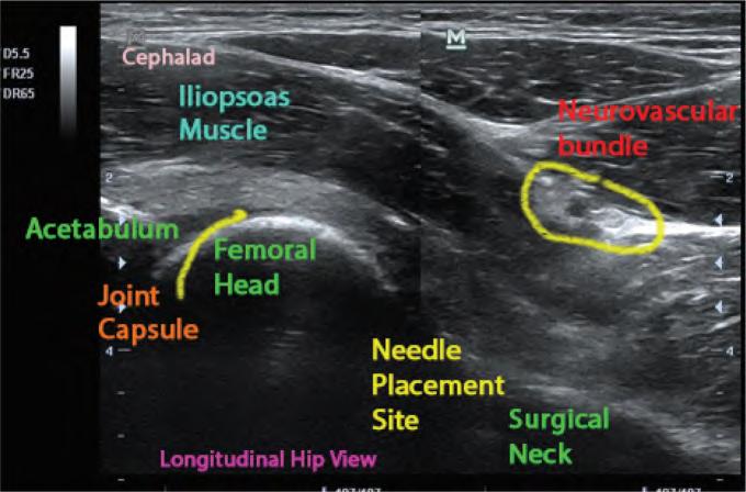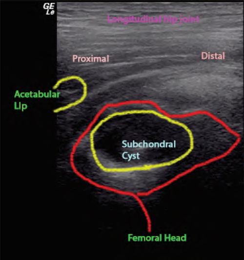 Ultrasoundimagedemonstratingavascularnecrosisofthehip.(CourtesyStevenD.Waldman,MD.)