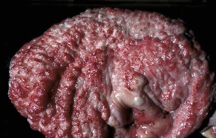 Surface texture Mostly smooth with patchy roughening because of fibrinous exudate