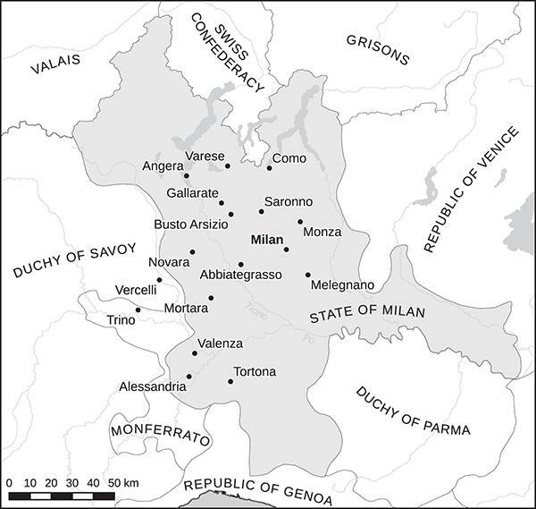Fig. 0.1 Map of the State of Milan (Lucas Pfister, Bern)