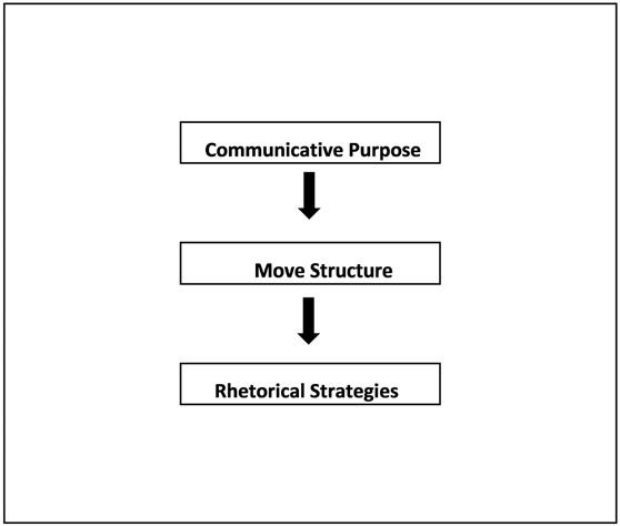 Communicativepurpose/goalemergesasthemainrationaleforthegenreand triggersamovestructure.Movesareunderstoodasdiscoursalorrhetoricalunits thatperformacoherentcommunicativefunctioninawrittenorspokendiscourse(Swales,2004:228),wheresomemovesareessential/obligatoryand othersarenonobligatory.Forinstance,inresumes,oneisexpectedtoincludea part(move)oneducationandanotheronprofessionalexperience,whereasa moveonhobbiesisnotnecessarilyexpected.Fortheirpart,rhetoricalstrategies refertothedifferentsemioticmodes(lexico-grammaticalstructures,jargon, layout,font,register,amongothers)usedatthemicro-leveltorealizeeachmove