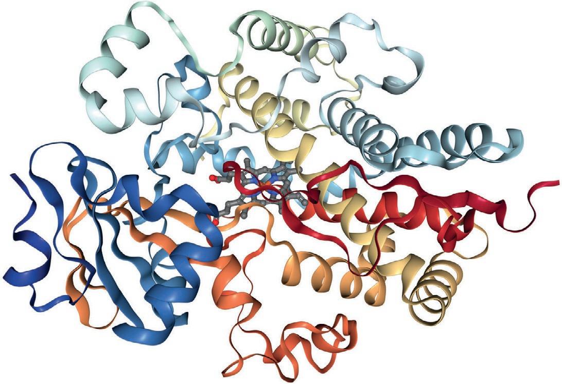 wheretheCysisligandedtothehemeironatomandXb isabasicresidue. P450sareinvolvedinthemetabolismof ¾ of(smallmolecule)drugs (Fig.7),andaboutfiveP450sareinvolvedwith90%ofthedrugs (Guengerich,2015; Rendic&Guengerich,2015).Thosefractionshave remainedsimilarfornewdrugs,withP4503A4playinganevenmoredominantrole(Fig.7).Thistrendmaybedue,atleastinpart,to(i)atendency towardslargermolecules,ineffortstoachieveselectivityandpotency,and (ii)effortstoavoiddependenceontheP450sshowingmoregeneticpolymorphism(e.g.,2C19and2D6).