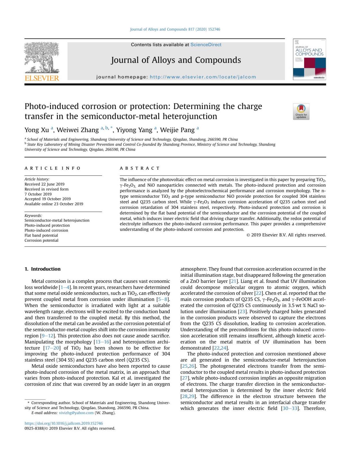 [44] M.Sun,Z.Chen,Enhancedphotoelectrochemicalcathodicprotection Y.Xuetal./JournalofAlloysandCompounds817(2020)152746