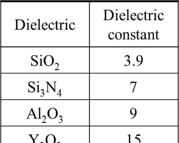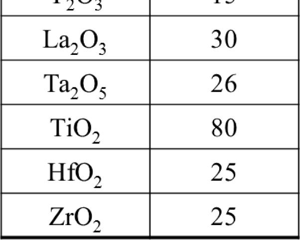 Table 1.2. High-k gate dielectric candidates to replace SiO2