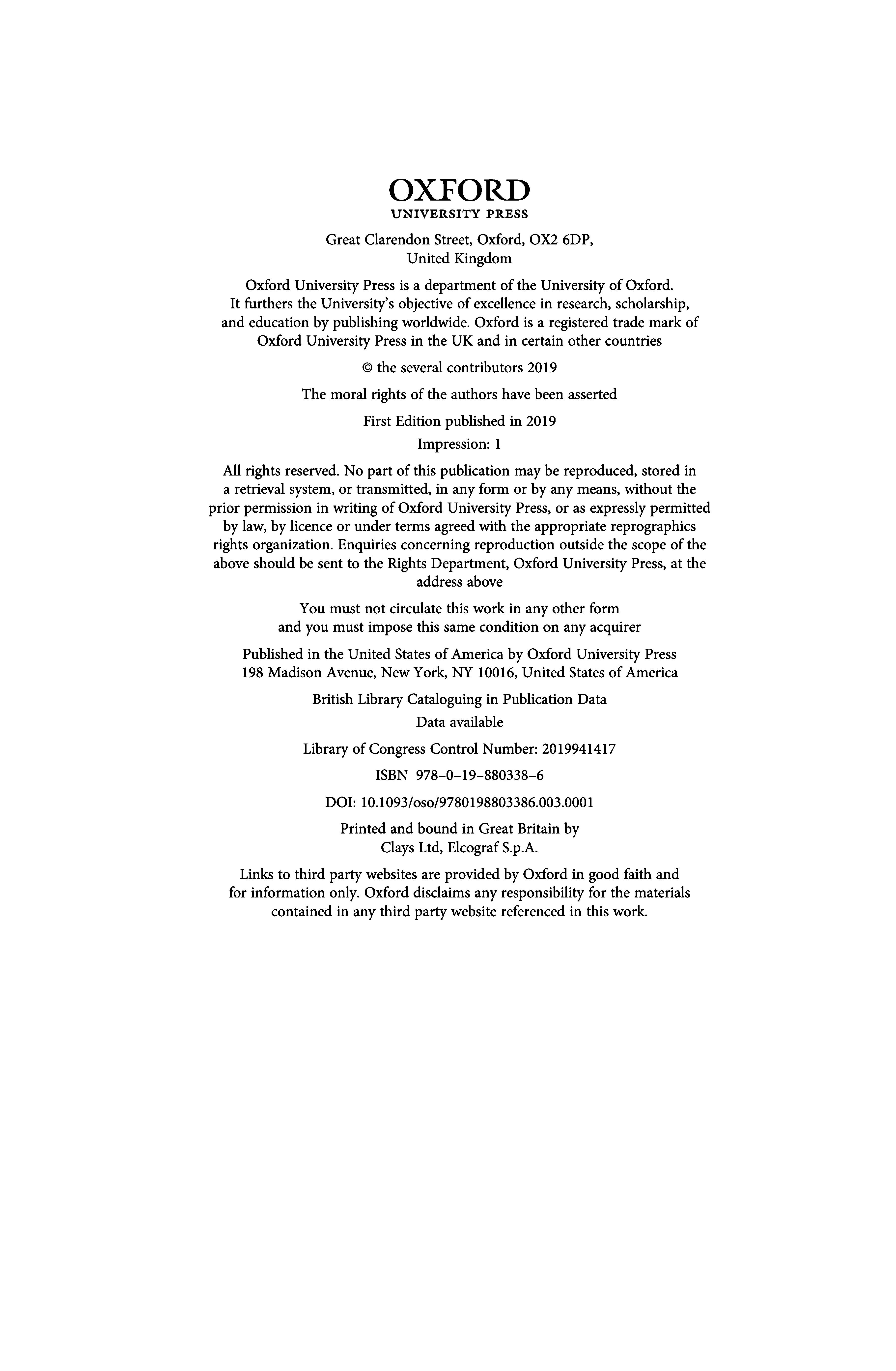 Links to third party websites are provided by Oxford in good faith and for information only. Oxford disclaims any responsibility for the materials contained in anythird party website referenced in this work.