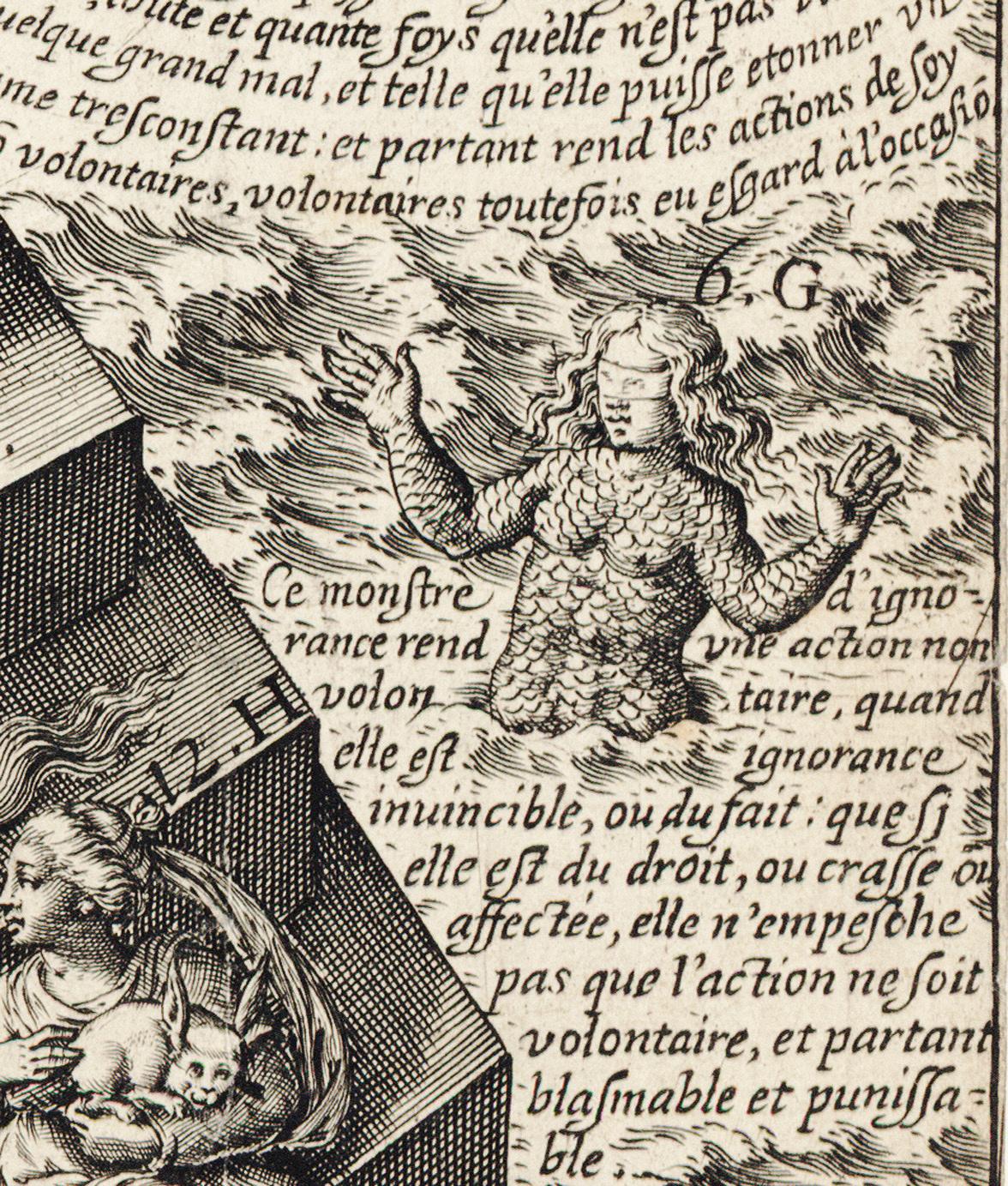 4. A “monster of ignorance” (monstre d’ignorance), labeled “6.G.” From Tableau industrieux de toute la philosophie morale (Artful Table of Moral Philosophy in Its Entirety), created in 1618 by Meurisse, Gaultier, and Messager for students at the Grand Couvent.