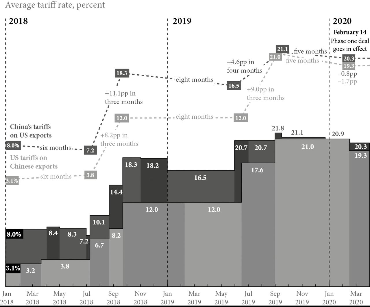 Figure 1.1 US–China Trade War: Escalation of Tariffs, January 2018–March 2020
