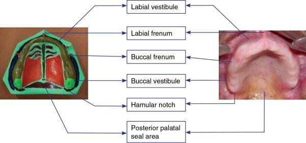 FIG 1.1.2.2 Parts of the edentulous oral cavity – relief areas.