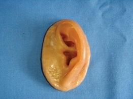 The prosthesis that is used to replace a part or all of any stomatognathic or craniofacial structures. Examples of the maxillofacial prosthesis are auricular prosthesis, orbital prosthesis, nasal prosthesis and facial prosthesis (Figs 1.1.1.12–1.1.1.14).