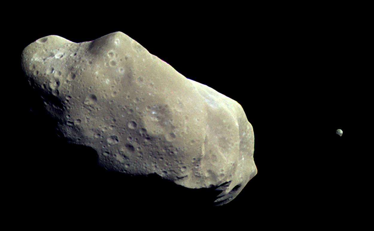 AsteroidIdawithitsmoonDactyl,the firstasteroidmoontobediscovered.