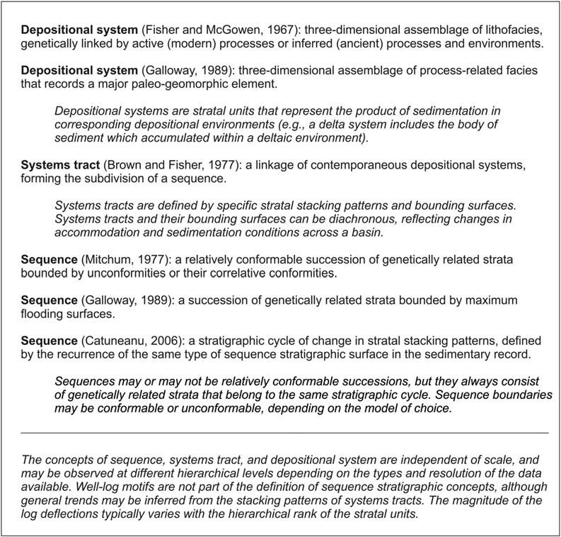 Thedevelopmentofseismicstratigraphyinthe1970s madeuseofestablishedsedimentologicalconcepts(e.g., theconceptof“depositionalsystem”asathreedimensionalassemblageoflithofacieslinkedbyacommonenvironmentofdeposition;FisherandMcGowan, 1967)todefinenewbuildingblocksofthestratigraphic