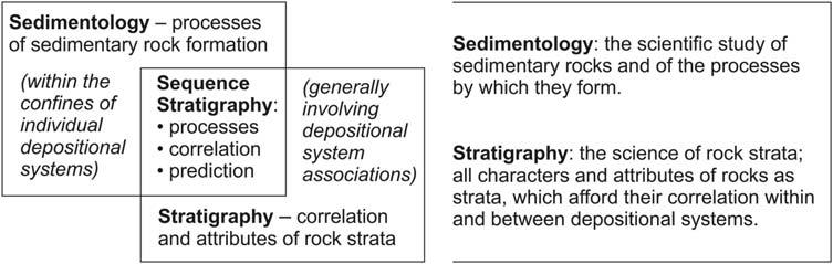 FIGURE1.4 Sequencestratigraphyatthelimitbetweenprocess sedimentologyandconventional stratigraphy(definitionsmodified fromBatesandJackson,1987). Sequencestratigraphymakesuseof theprinciplesandmethodsofboth processsedimentologyandconventionalstratigraphy,inadditionto whichitbringsanewelementof faciespredictability.