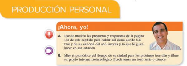 • Producción personal: This new chapter-ending section guides students to create a capstone portfolio of writing, speaking, and filming activities.
