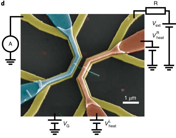 Fig.1.1 Openquantumsystems.(a)Aroughsketchofasystem S incontactwithabath B withwhichitcanexchangeenergies,particles,entropy,etc.(b)DiagramoftheNewcomenatmosphericsteamengineasanexampleofanancient‘openquantumsystem’:thermodynamics hadalreadydividedtheuniverseintoasystempartandreservoirs.(c)(False-coloured)scanningelectronmicroscopeimageofamodernopenquantumsystem:aquantumdotformedby ananowire(thingreenline)incontactwithelectronreservoirs(yellow)andheaters(blueand red).SuchsetupswillbetreatedinfurtherdetailinSection 3.10.Reprintedbypermission fromSpringerNature:SpringerNature, NatureNanotechnology (Aquantum-dotheatengine operatingclosetothethermodynamicefficiencylimits,M.Josefssonetal.),Copyrightby SpringerNature(2018).