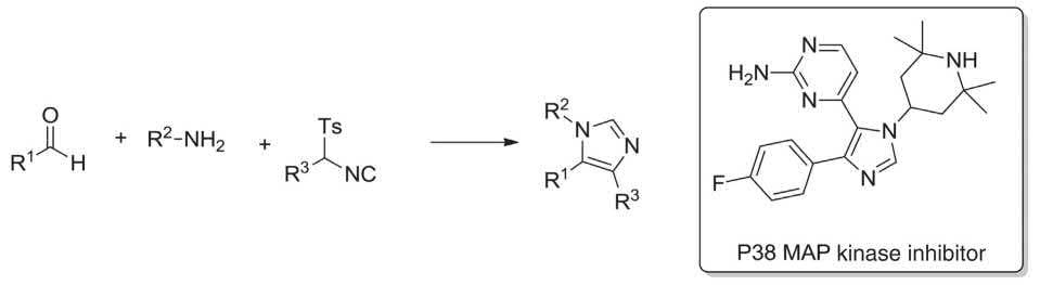 SCHEME 1.7 Van Leusen MCR for the synthesis of p38 MAP kinase.