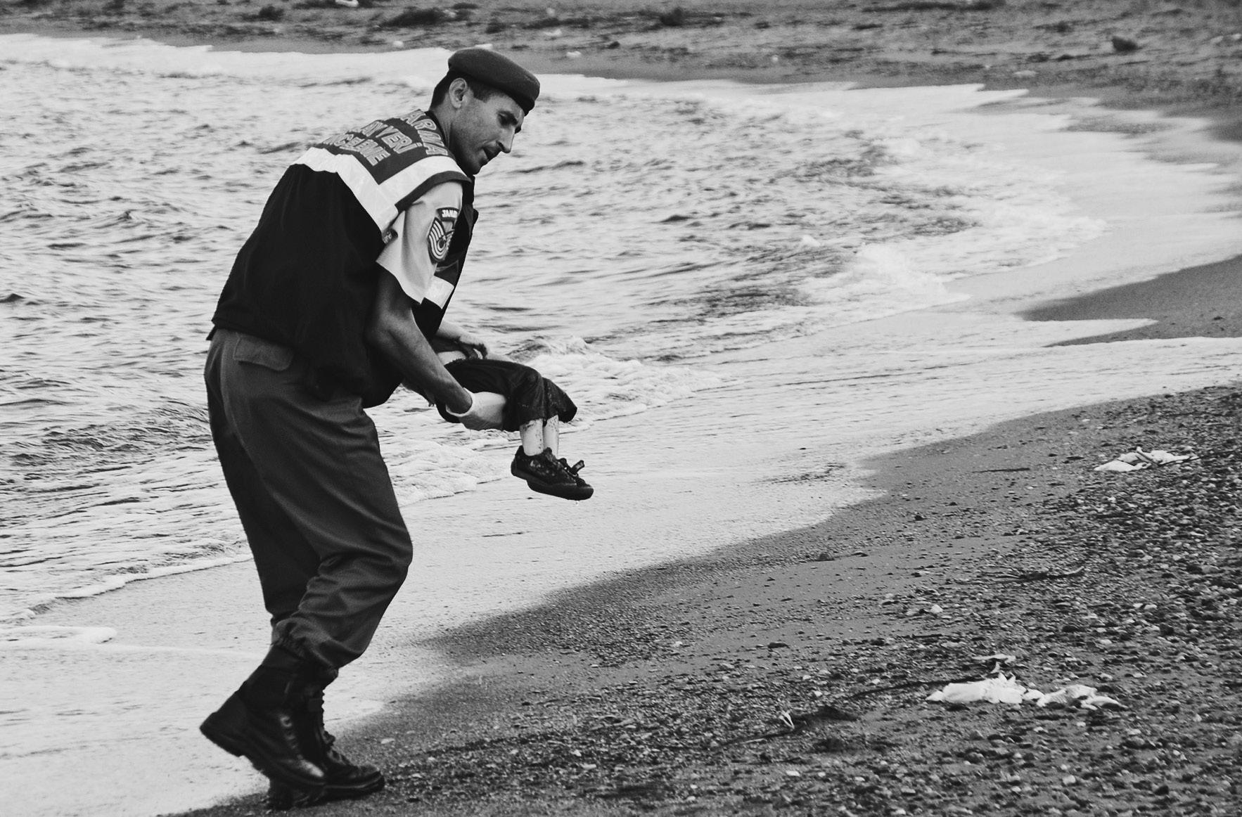 Fi G ure 1.1 Turkish gendarme Mehmet Çıplak carries the body of three-year-old Alan Kurdi on a beach in southern Turkey after a boat carrying Syrian refugees sank while trying to reach the Greek island of Kos in September 2015. Photo by Nilufer Demir/AFP/Getty Images.