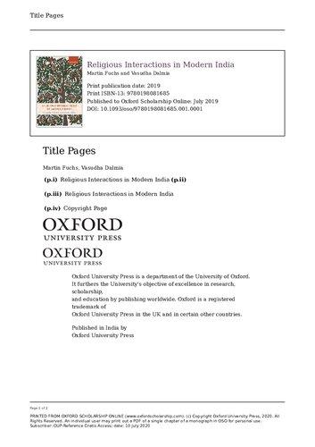 While thinking in terms of processes helps to bring out the complexity of constellations and events as well as the abundance of internal tensions involved, only a comparative look across a time gap of several centuries makes it possible to throw into relief the longer-term cumulative tectonic shifts. Spanning the time from what has been termed early modernity—10 covered by Religious Interactions in Mughal India—up to the middle of the twentieth century, covered in this volume, brings the similarities as well as differences between the two