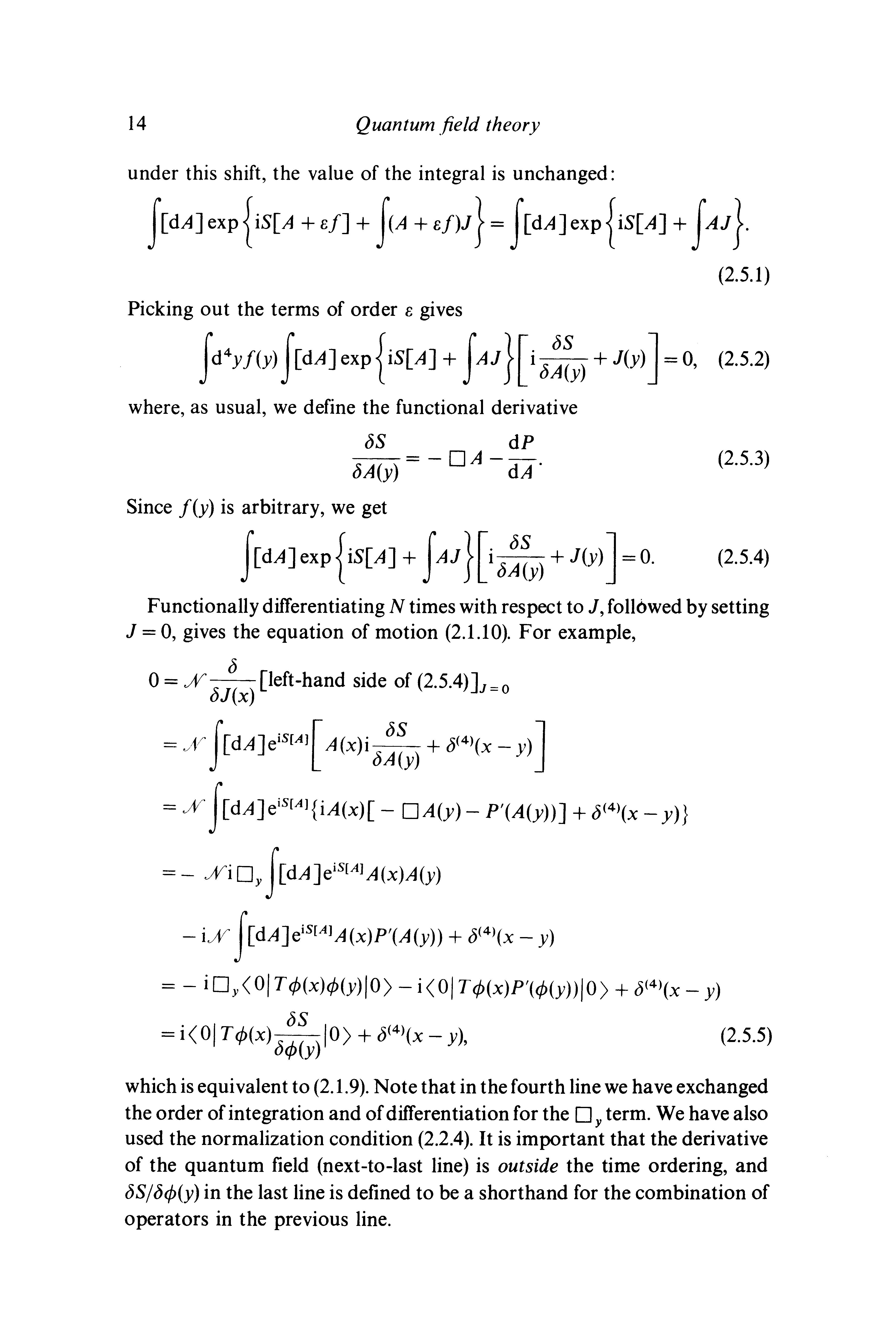 which is equivalent to (2.1.9). Note that in the fourth line we have exchanged the order of integration and of differentiation for the 0 Y term. We have also used the normalization condition (2.2.4). It is important that the derivative of the quantum field (next-to-last line) is outside the time ordering, and c5Sjc5cf>(y) in the last line is defined to be a shorthand for the combination of operators in the previous line.