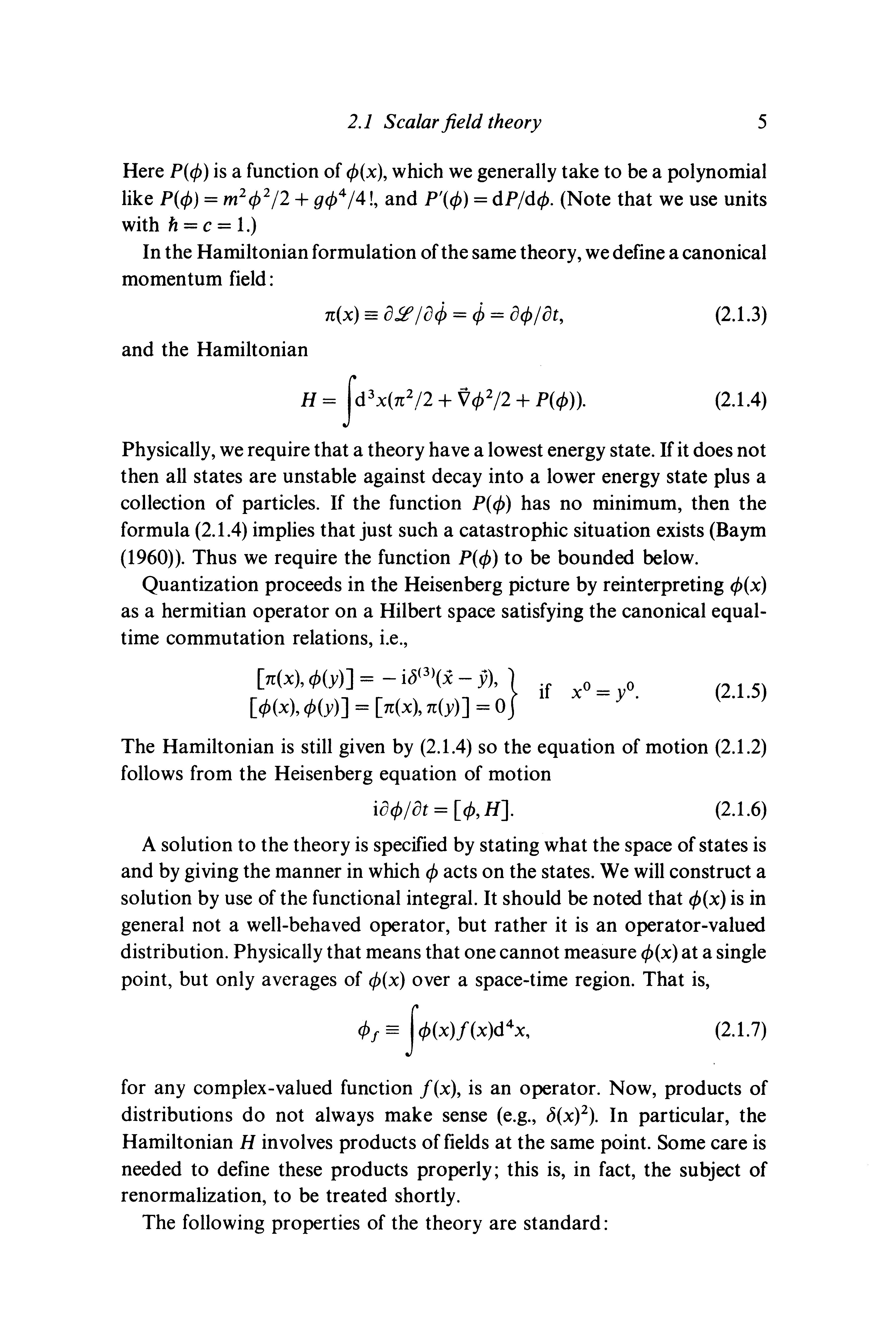 for any complex-valued function f(x), is an operator. Now, products of distributions do not always make sense (e.g., <5(x) 2 ). In particular, the Hamiltonian H involves products of fields at the same point. Some care is needed to define these products properly; this is, in fact, the subject of renormalization, to be treated shortly.