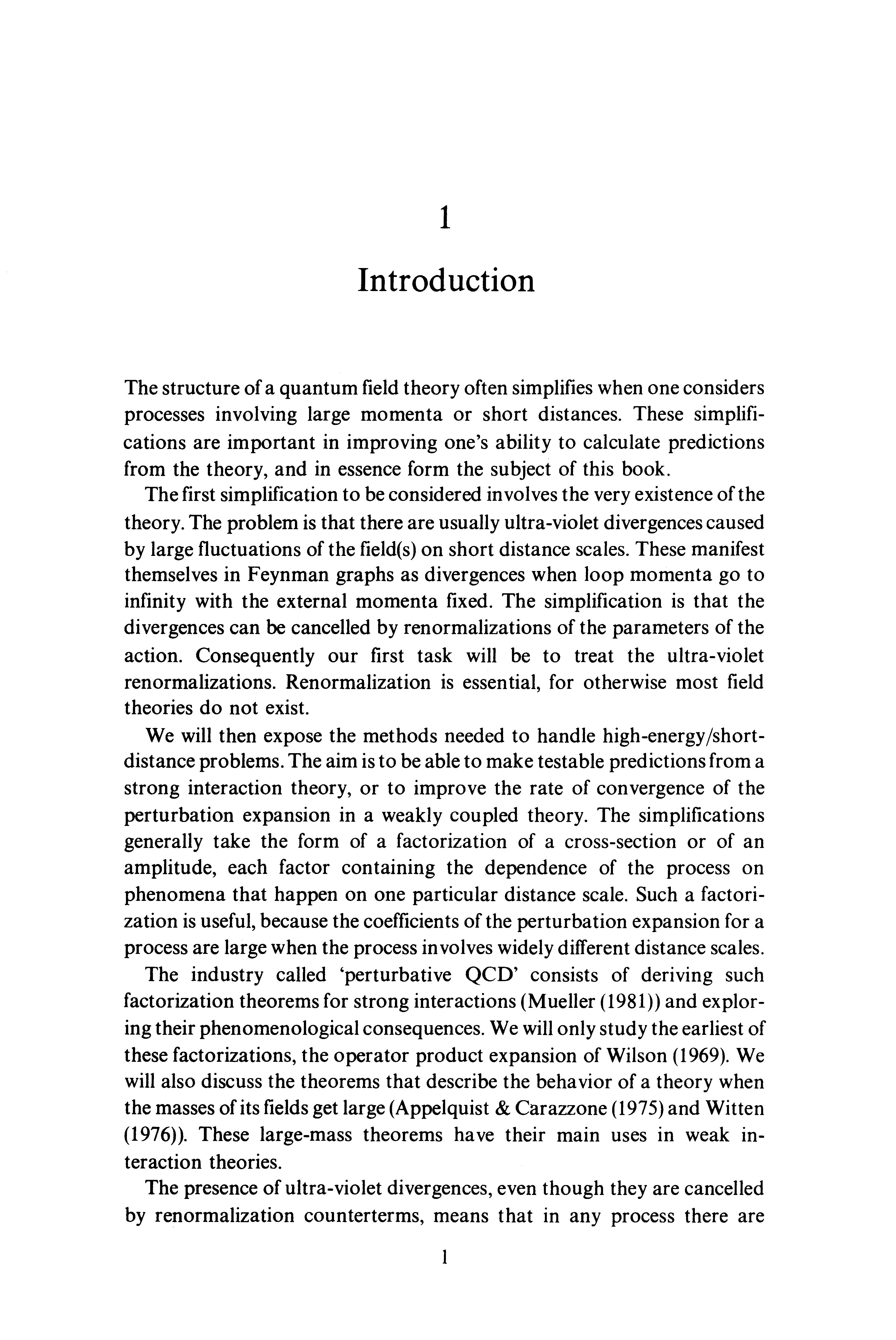 The structure of a quantum field theory often simplifies when one considers processes involving large momenta or short distances. These simplifications are important in improving one's ability to calculate predictions from the theory, and in essence form the subject of this book.